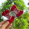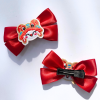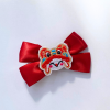 Họa tiết đầu lân truyền thống được đính chắc chắn ở giữa nơ, tạo điểm nhấn nổi bật.